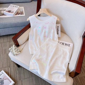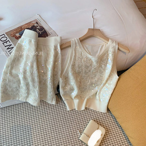 名媛气质小香风亮片无袖背心两件套女2022夏季新款...