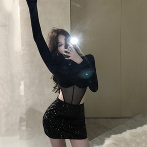 外贸2022欧美夏季亮片抹胸铅笔裙性感个性夜店长款...