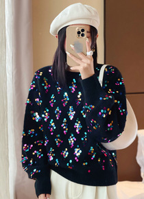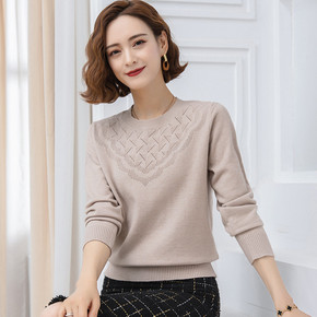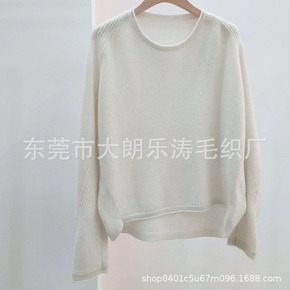 纯羊绒打底衫宽松显瘦长袖毛衣亮片金银丝卷边圆领蝙蝠...