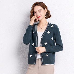 时尚针织女中老年妈妈2020秋冬季新款外穿开衫外套...