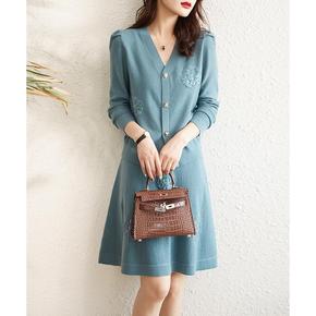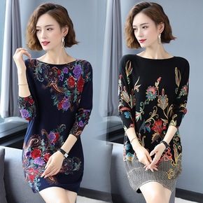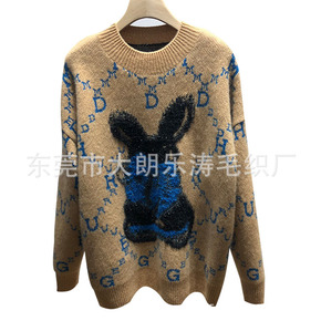2021秋冬新款羊毛衫毛衣女V领修身大码印花针织打...