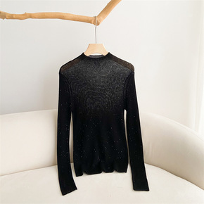 【批发】水溶性羊毛打底衫亮片溥长袖半高领针织纯色2...