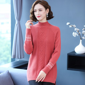 2021冬季宽松外穿女毛衣中长款羊绒针织打底衫大码...