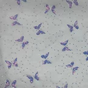 现货新款女童蝴蝶珠片刺绣蕾丝面料 连线珠片蝴蝶 网...