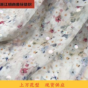 5mm撒金吊片珠片绣 蕾丝绣花面料 满幅珠片布 ...