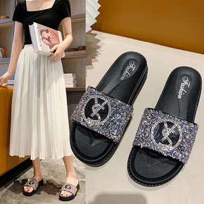 高跟拖鞋女夏外穿时尚水钻闪闪韩版INS居家时尚一字...