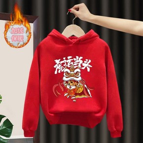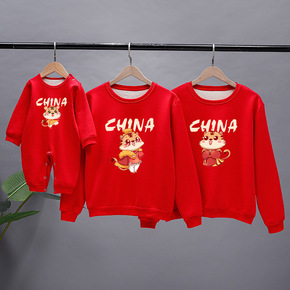 亲子装2022虎年拜年服中国红过年加绒姐弟装一家三...