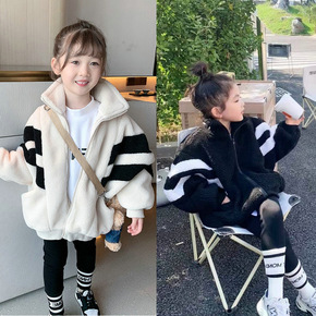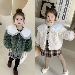 女童外套软毛毛海军领加厚上衣外衣22冬装新款外贸童...