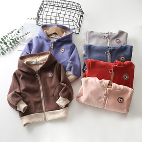 儿童摇粒绒外套童装 冬季新款抓绒加厚保暖连帽上衣拉...