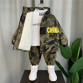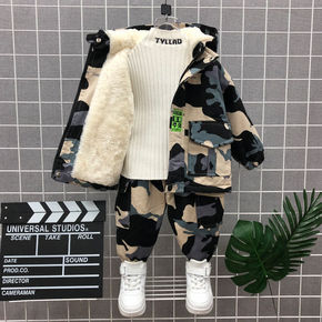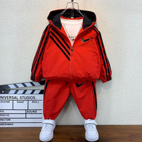 男童秋冬套装2021童装宝宝加绒加厚衣服潮帅气儿童...