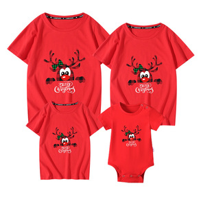圣诞节亲子装一家四口全家装母女短袖t连体衣哈衣爬爬...