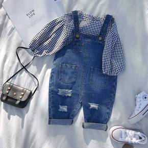 儿童裤子女宝宝牛仔背带裤男童1婴儿童春装女童3岁小...