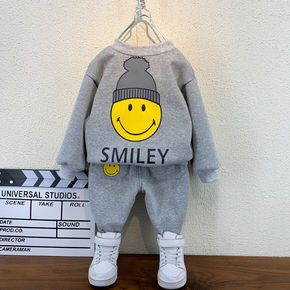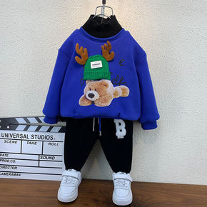 男童冬装加绒套装2021新款洋气宝宝套头衣服儿童加...