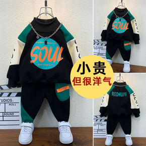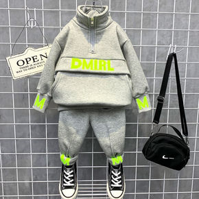 男童秋装加绒套装2021新款洋气帅气宝宝秋冬衣服男...