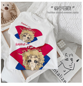 美少女亲子装T恤2022夏新款韩版童装短袖卡通印花...
