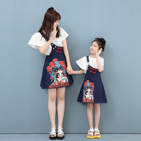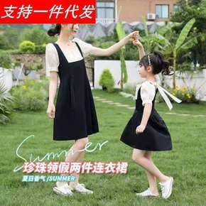 厂家直销亲子装风女童背带裙两件套2021夏季新款儿...