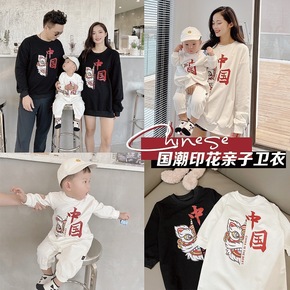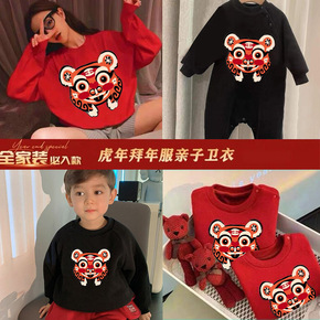 新年虎头亲子装秋冬一家三口四口全家装加绒卫衣婴儿连...