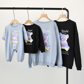洋气亲子装秋装卫衣新款字母刺绣小熊挂件高端母女装炸...