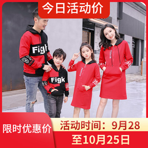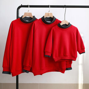 亲子装2021秋装一家三口婴儿红色卫衣洋气母女装新...