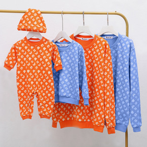 明星同款亲子装春秋冬季长袖卫衣百天婴儿爬服一家三口...