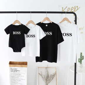 亲子装夏装2021新款潮一家三口四口黑白t恤 母子...