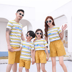 亲子t恤短袖家庭装 韩版亲子装夏装棉全家装短袖 厂...