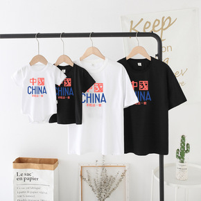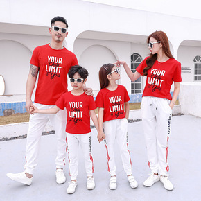 新款亲子情侣装一家四口全家装度假旅游学校团体活动军...