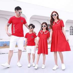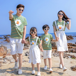 2021新款亲子装夏装一家三四口海边度假休闲旅游全...