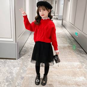 女童网红套装裙2021新款秋冬装女孩洋气时尚儿童红...