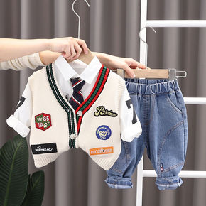 宝宝春装套装2022新款男童洋气马甲针织三件套小儿...