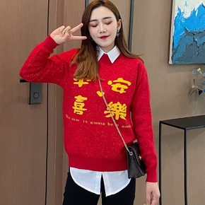女童红色毛衣加绒2021冬装中大童儿童洋气新年线衣...