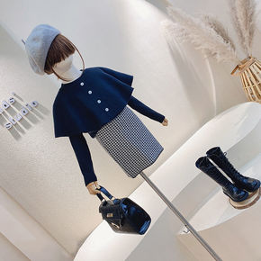 单/童装2020秋装新品女童欧范儿巨洋气斗篷式弹力...