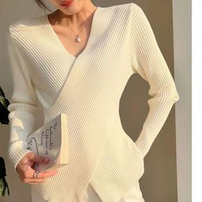瑾儿STUDIO【知性温柔】交叉针织衫显瘦上衣大码...