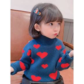女童毛衣女童高领毛衣套头小童2021秋冬装女宝宝针...