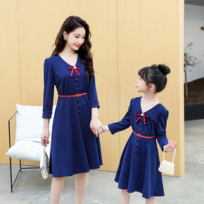 2101春装新款2021韩版时尚潮圆点连衣裙亲子装...