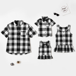 欧美亲子装全家装绅士黑白格子连衣裙跨境专供亚马逊e...