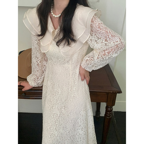 2022夏季新款法式温柔甜欲风超仙女花边雪纺连衣裙...