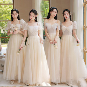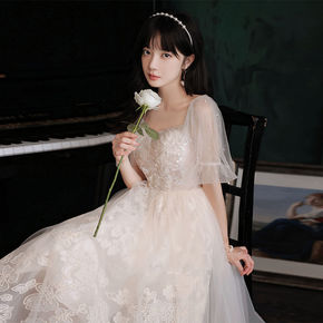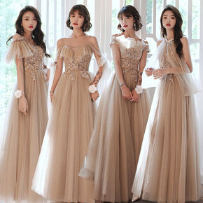 香槟色晚礼服典雅仙气订婚连衣裙主持成人礼裙女伴娘服...