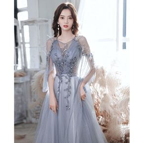 星空晚礼服2022新款主持人仙气森系连衣裙平时可穿...