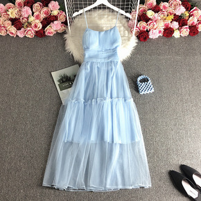 仙女裙温柔风连衣裙女神范气质吊带心机褶皱修身中长款...