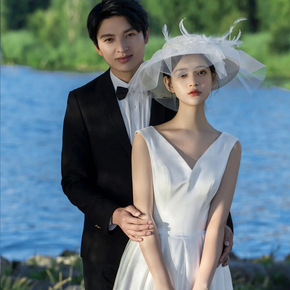 2022夏新款法式轻婚纱复古风简约日常旅拍超仙森系...