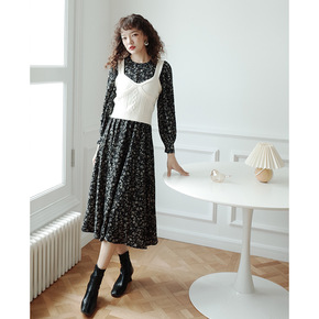 2022春季新品茶歇裙子法式复古碎花长裙超仙森系两...