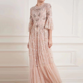 2021秋季重工刺绣绣花订钻立体花朵宴会礼服宫廷风...