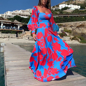 欧美跨境外贸女装夏季新款扎染印花连衣裙女宽松大码休...
