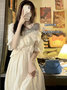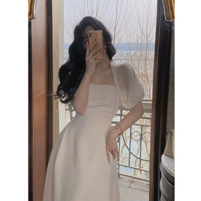 2022新款法式超仙气质小众设计方领公主白色温柔茶...