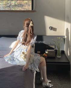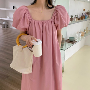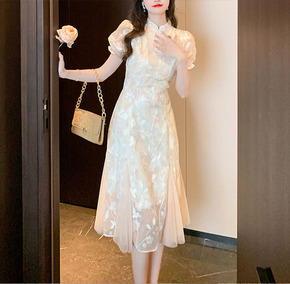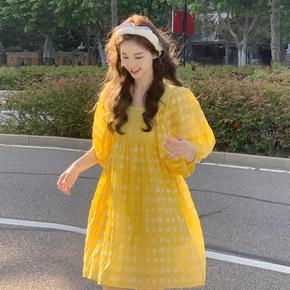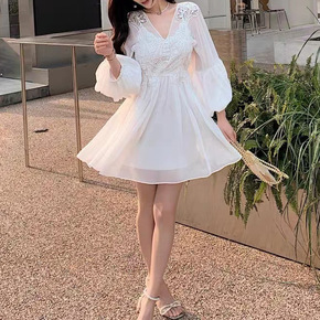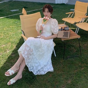 清纯甜美泡泡袖连衣裙女春夏2022新款超仙设计感碎...