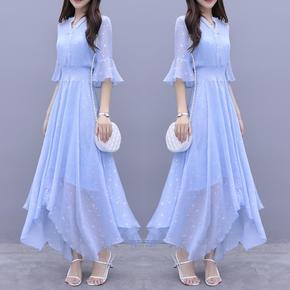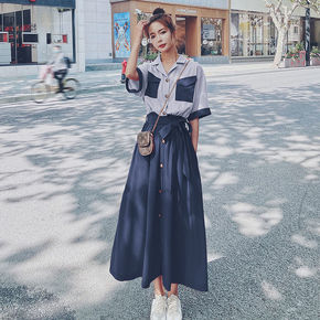 日系大版A版宽松夏季2021大摆裙插兜短袖无袖拖地...