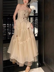【玫瑰甜茶】重工设计感小众拼接月光纱仙气长裙+针织...