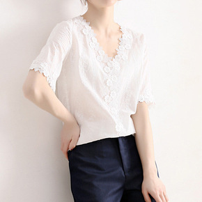 仙蕾丝花边衬衫女百搭洋气2021夏季新款气质钩花短...