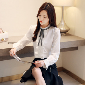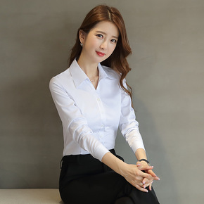 春季职业衬衫女长袖女款前台客服白衬衣时尚小个子V领...
